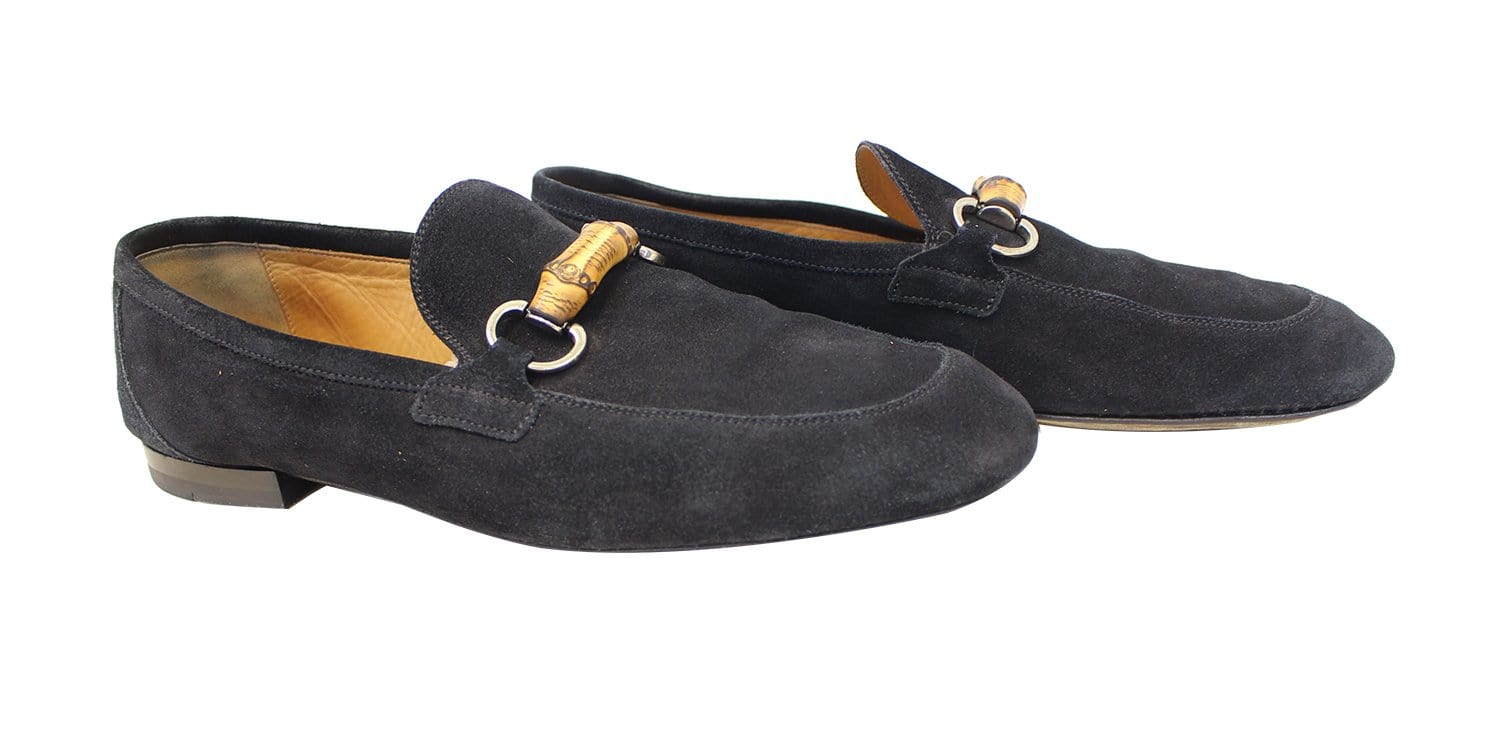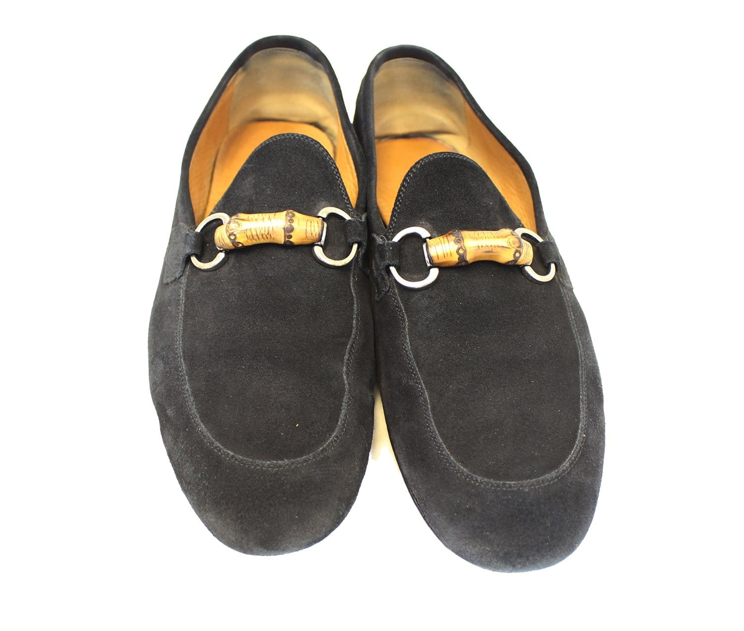 Bamboo Horsebit Black Suede Loafers 368435 Size 7