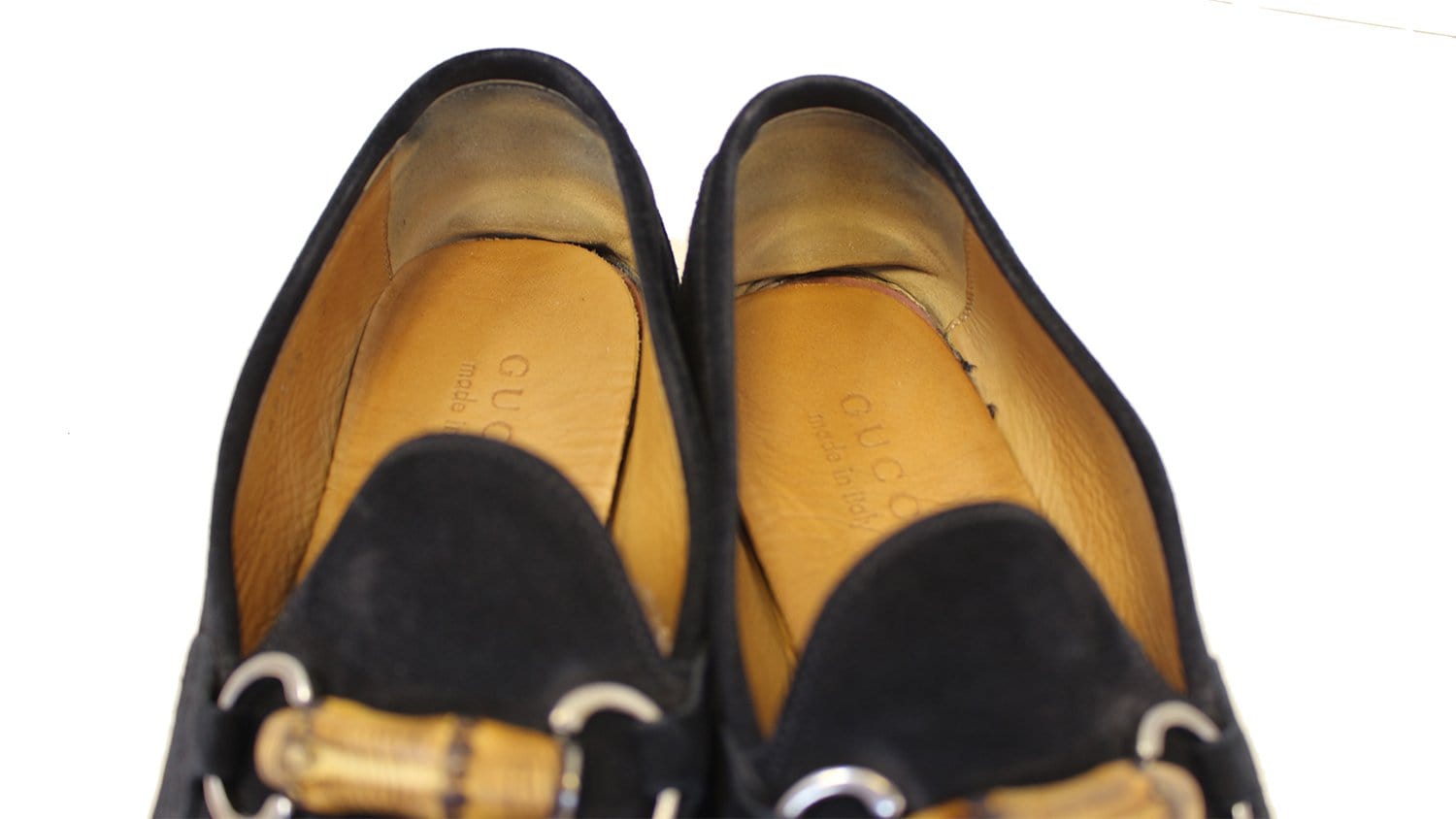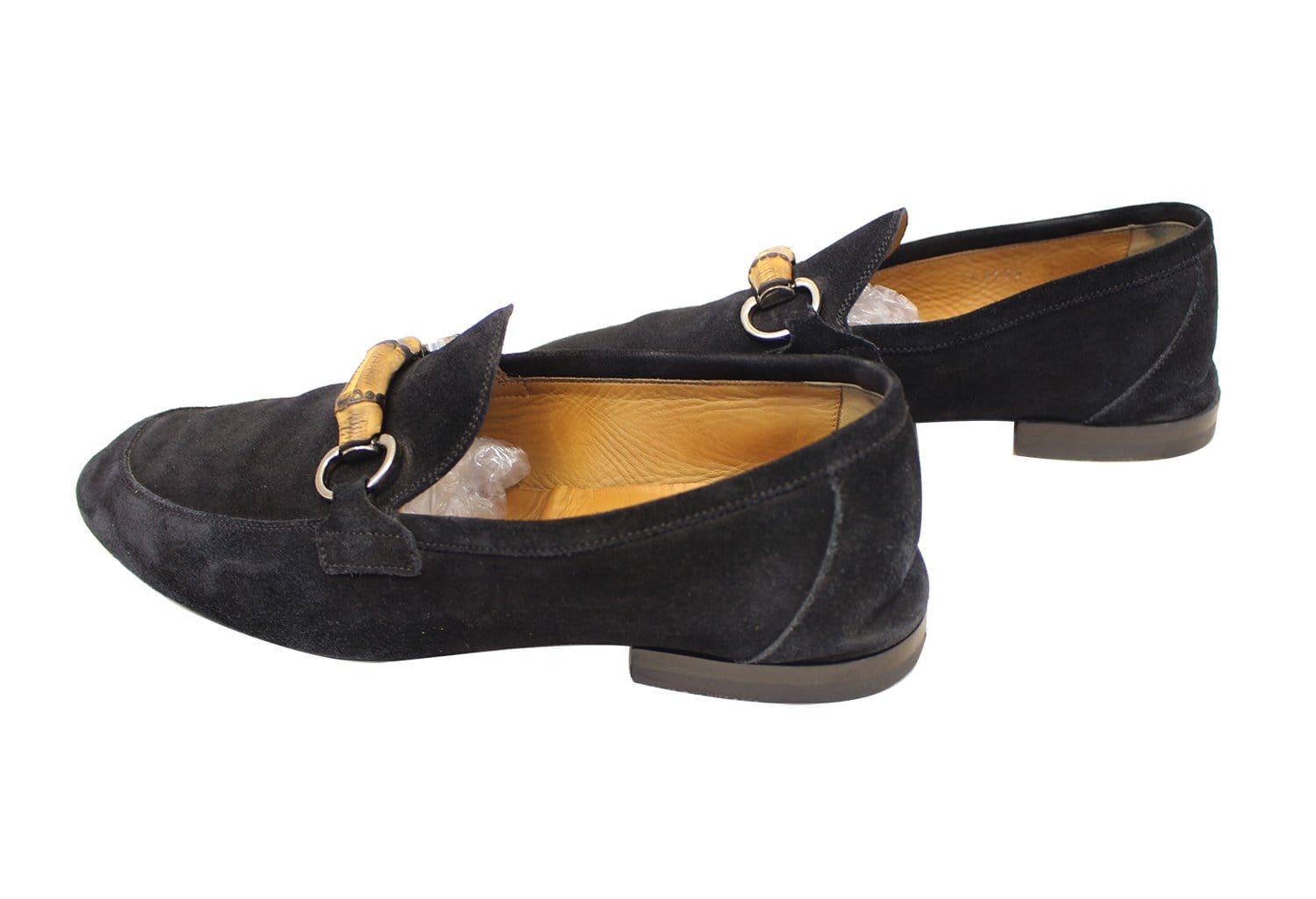 Gucci Bamboo Horsebit Black Suede Loafers 368435 Size 7
