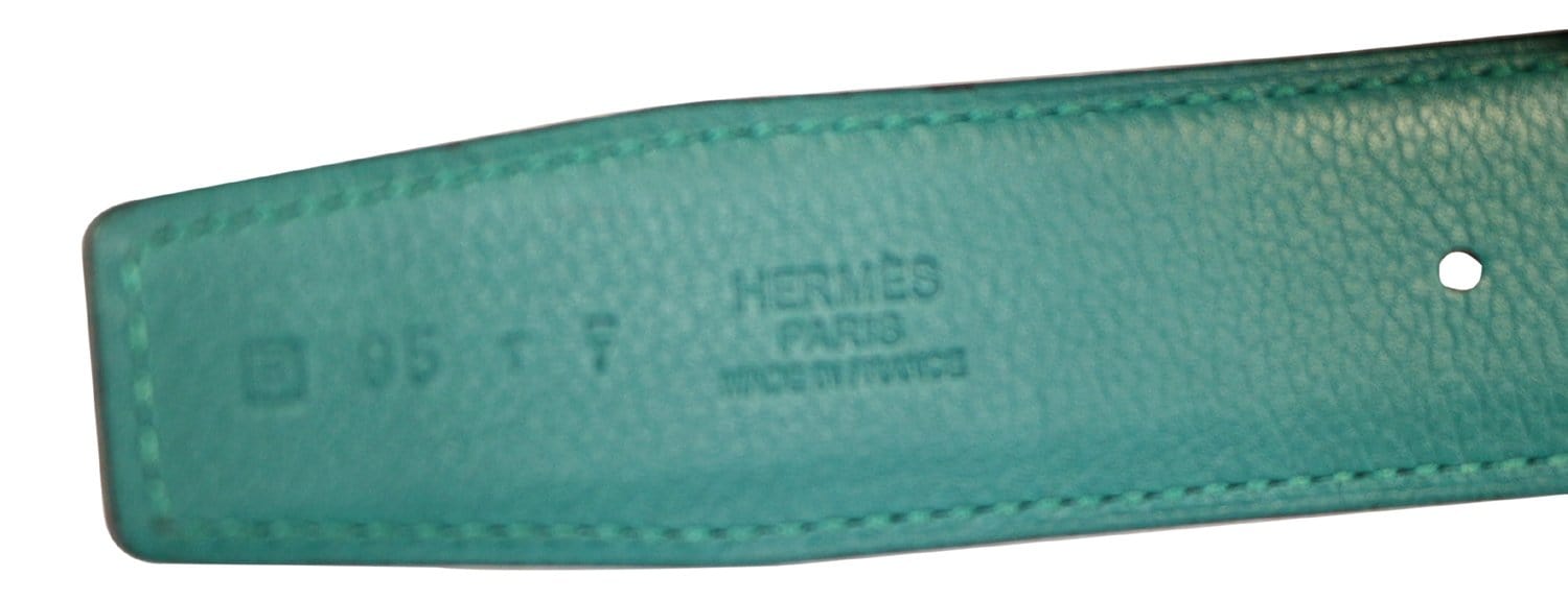 HERMES Belt Constance Buckle H Reversible Blue/Aqua Size 95