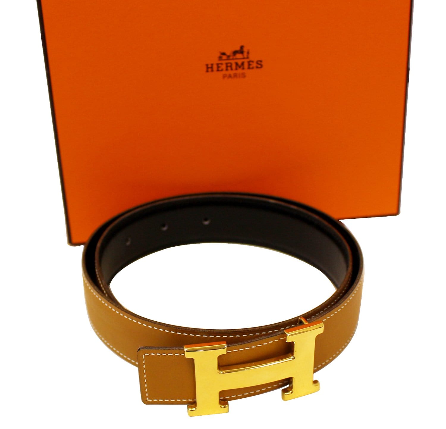 HERMES Belt Constance Buckle H Reversible Brown Black 65cm